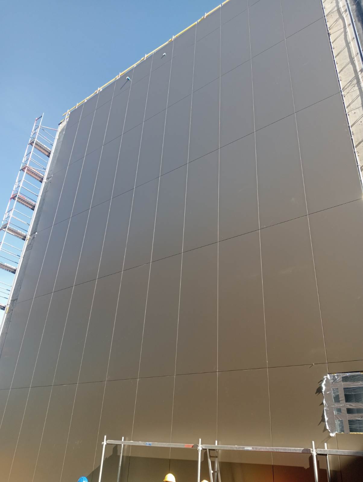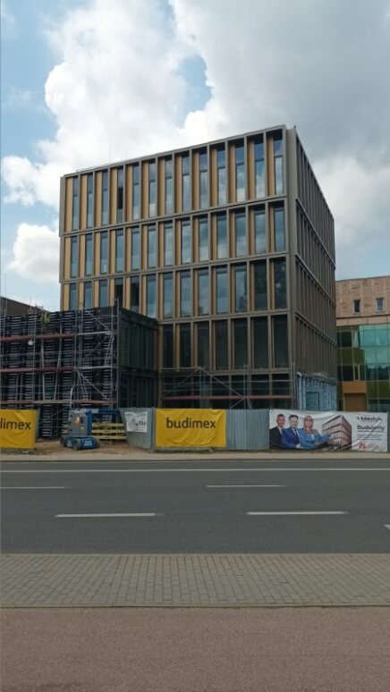 Firma Tomar wykonała demontaż zastanej elewacji, dostosowała podkonstrukcję pod montaż nowych okłądzin oraz docieplenie wełną mineralną.