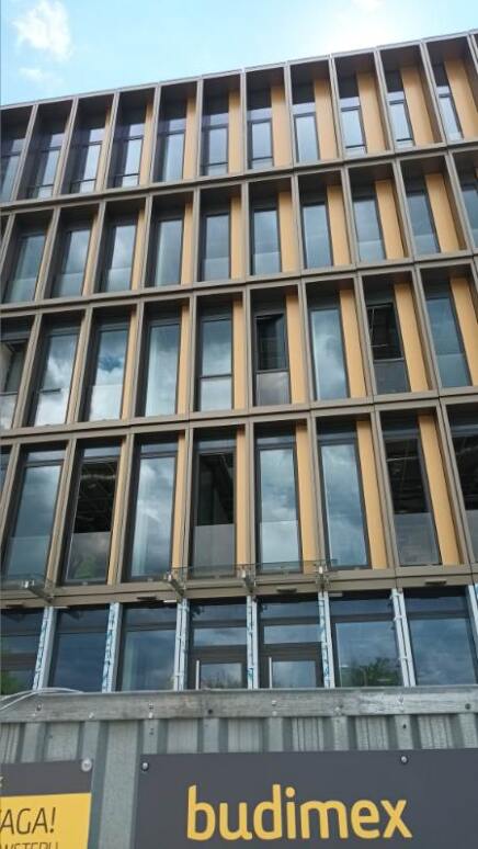 Renowacja elewacji budynku przy ul. Rudzkiej w Warszawie z wykorzystaniem okładzin HPL, montaż na nity.